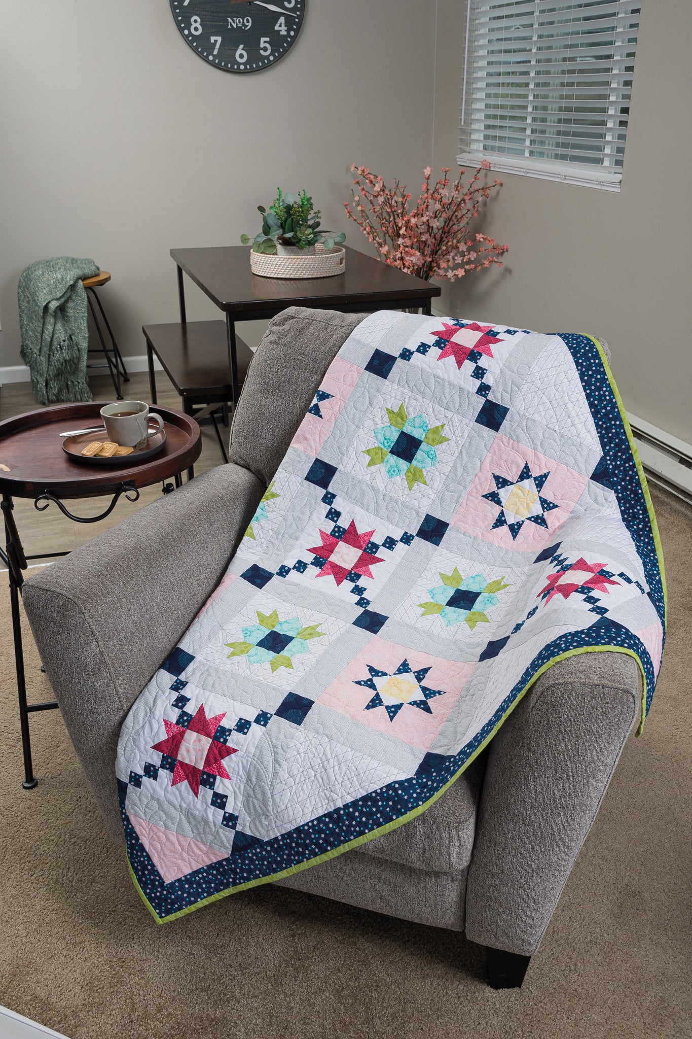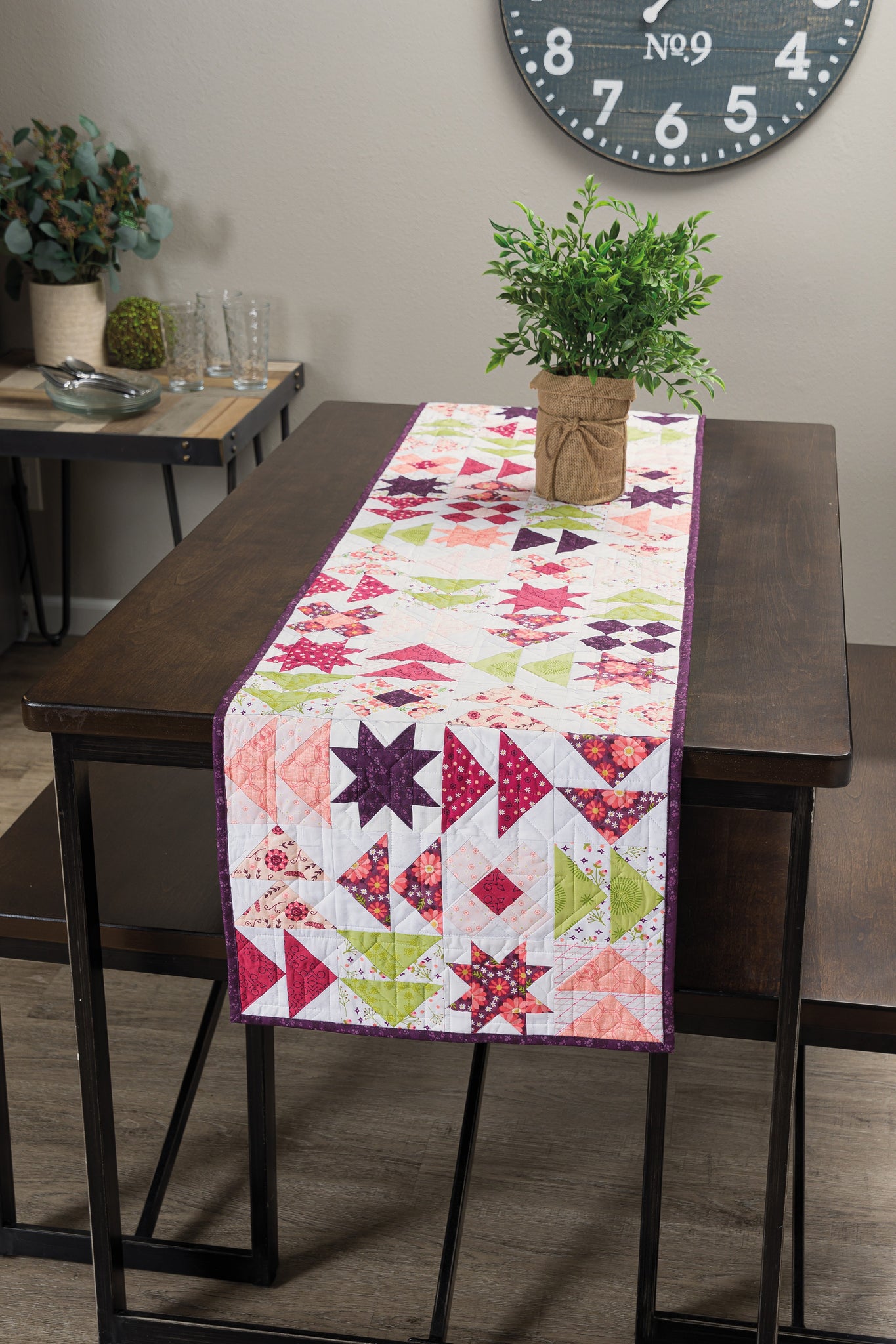 The Barn Star Sampler quilt, quite possibly the star of the show, incorporates 20 different block designs spanning 4" to 24" in a fresh and modern sampler-quilt layout. Combine patchwork blocks to create a table runner, a wall quilt, a lap quilt, and full-size bed quilt designs. With so many block sizes, star variations, and layouts, the sky's the limit!