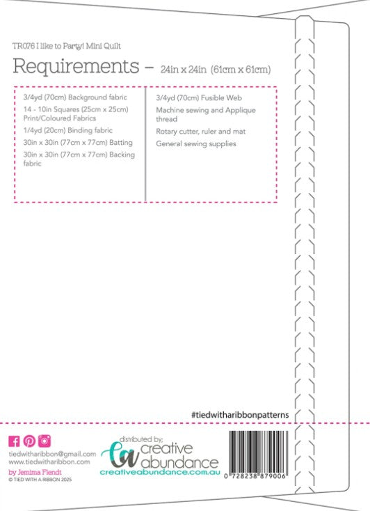 This charming mini quilt features the playful quote, "I like to party and by party I mean stay home and sew," beautifully stitched using Machine Appliqué.