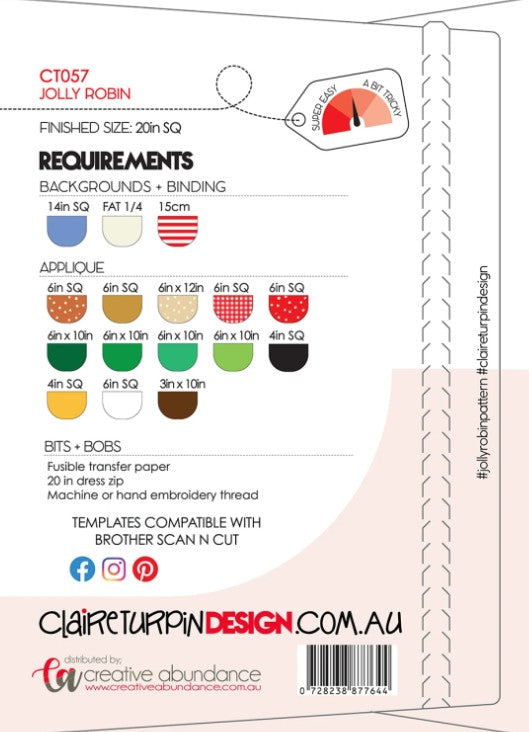 Jolly Robin - Cushion Pattern (CACT057)by Claire Turpin Design