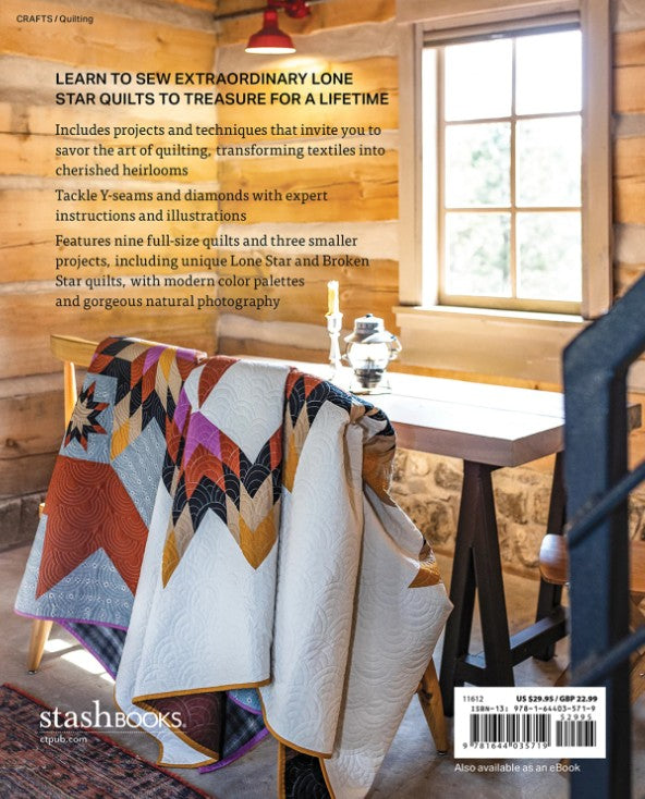 - Features nine full-size quilts and three smaller projects, including unique Lone Star and Broken Star quilts, with modern color palettes and gorgeous natural photography