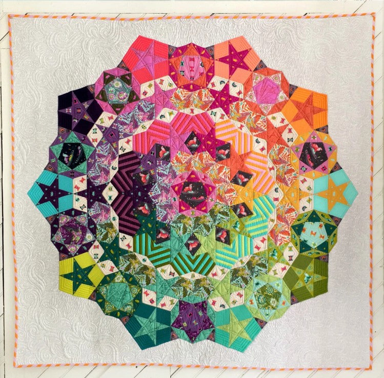 Create the captivating Tula Nova quilt by Tula Pink with the Complete Pattern and English Paper Piece Pack! This pack includes all the paper pieces needed to craft this stunning quilt, along with detailed pattern instructions and a coloring sheet to help plan your fabric placement.